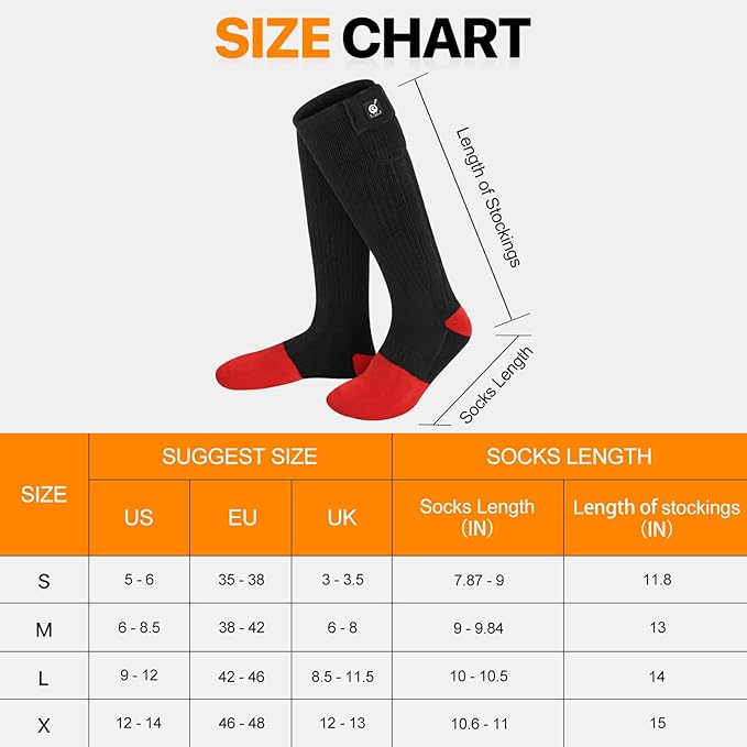 - 【Upgrade For A Perfect Fit】Heated socks increased wire softness by 10%, ensuring a more comfortable high elasticity. Prevent slipping but do not restrict your legs.