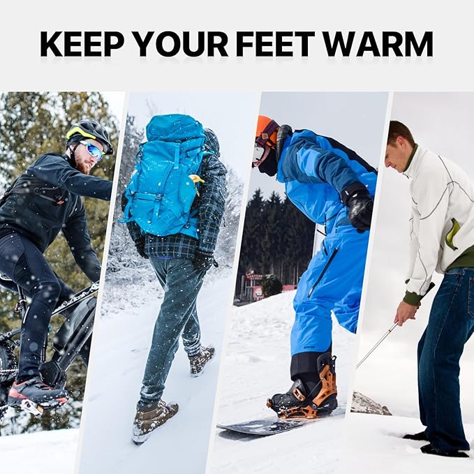 - 【Warm Up Whole Toes in 30s】Rechargeable heated socks rapidly heat up within 30s, cover the back of the feet and the whole toe area, and spread throughout the whole foot, keeping your feet warm and cozy.