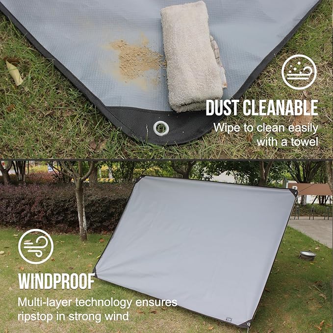 - ⛺️【Reusable and Durable】Rugged 4 Layers including PE, Polyester Mesh and Aluminum Foil. Suitable for Many Situations, including Raincoat, Camping, Hiking, Mountainning, Snowfield and Heavy Duty. Also Can be Used as Car Protection, Sunshine Shelter, Pets Shelter, SOS Signal, Solar Heater for Many Times.