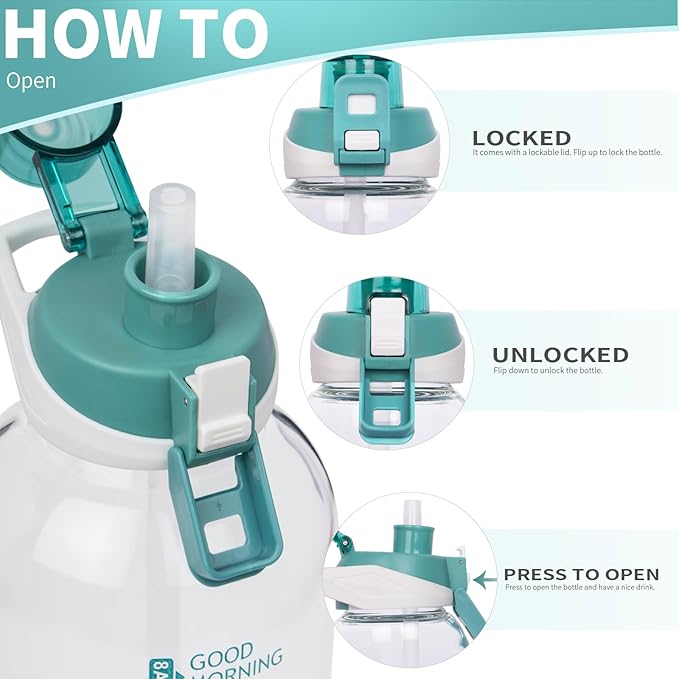 - FLIP LID & STRAW - Leakproof flip top lid. Simply open the glass bottle with one hand by clicking the button. There're two ways to drink. You can either directly sip from the straw or take off the straw and drink from the spout.