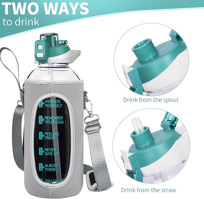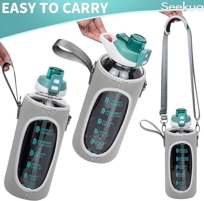 - EASY TO CARRY - The sports bottle comes with a silicone boot and a neoprene sleeve which can supply impact protection. The detachable shoulder strap for hands-free carrying. Perfect for home, school, office, gym, travel, hiking, bicycle, or other outdoor activities.
