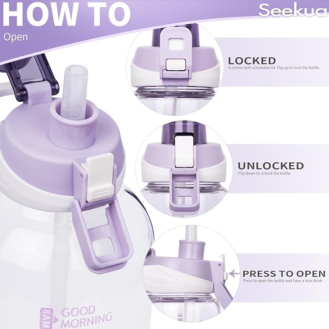 - FLIP LID & STRAW - Leakproof flip top lid. Simply open the glass bottle with one hand by clicking the button. There're two ways to drink. You can either directly sip from the straw or take off the straw and drink from the spout.