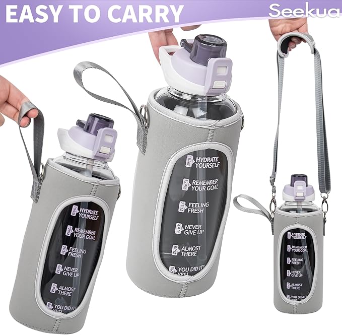 - EASY TO CARRY - The sports bottle comes with a silicone boot and a neoprene sleeve which can supply impact protection. The detachable shoulder strap for hands-free carrying. Perfect for home, school, office, gym, travel, hiking, bicycle, or other outdoor activities.