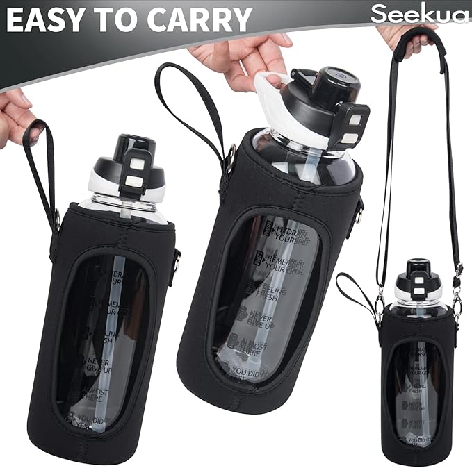 - EASY TO CARRY - The sports bottle comes with a silicone boot and a neoprene sleeve which can supply impact protection. The detachable shoulder strap for hands-free carrying. Perfect for home, school, office, gym, travel, hiking, bicycle, or other outdoor activities.