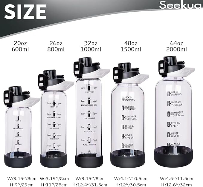 - MULTIPLE SIZES - 5 capacities to choose: 64 oz / 48 oz / 32 oz / 26 oz / 20 oz. The 20 ounces & 26 ounces bottles are small and lightweight while the 32 ounces, 48 ounces & 64 ounces are big, ensuring that you don't have to refill frequently for daily drinking. We offer a 90-day warranty. Contact us if you have any problem with your water bottle.