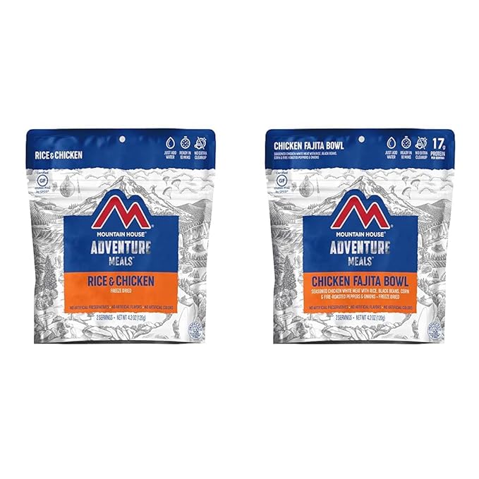 Mountain House Rice & Chicken + Mountain House Chicken Fajita Bowl | Freeze Dried Backpacking & Camping Food | 2 Servings Each