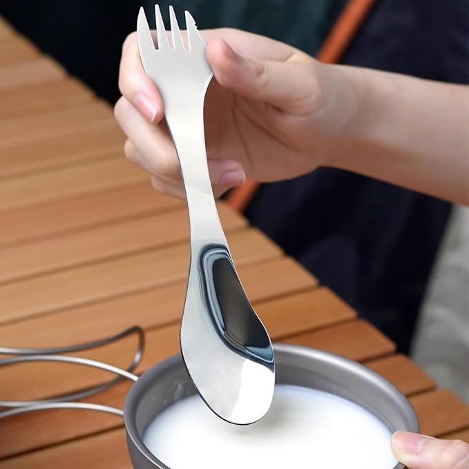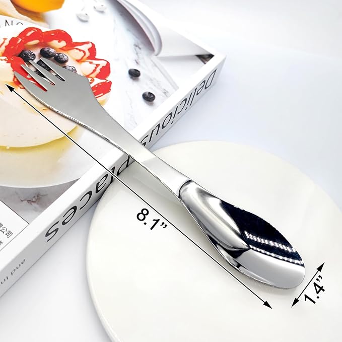2pcs Stainless Steel 3 in 1 Spork Camping Cutlery, Knife, Spoon, Fork Cutlery Combo for Camping, Hiking, Fishing and Any Outdoor Activities