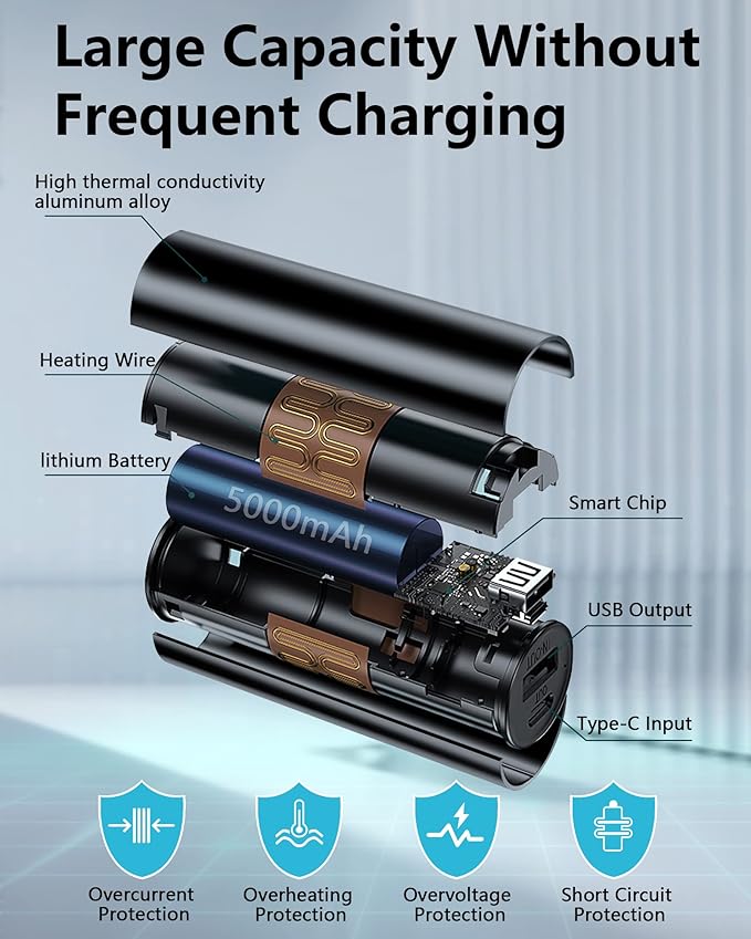 - 【2 in 1 Hand Warmers and Power Bank】 In an upgrade aluminum surface design, take only 5 seconds to quickly heat up,360° surround heating, Lightweight and palm-size, it’s comfortable to hold and portable for outdoors to keep hands warm in winter, and provides backup power source for your cellphone.