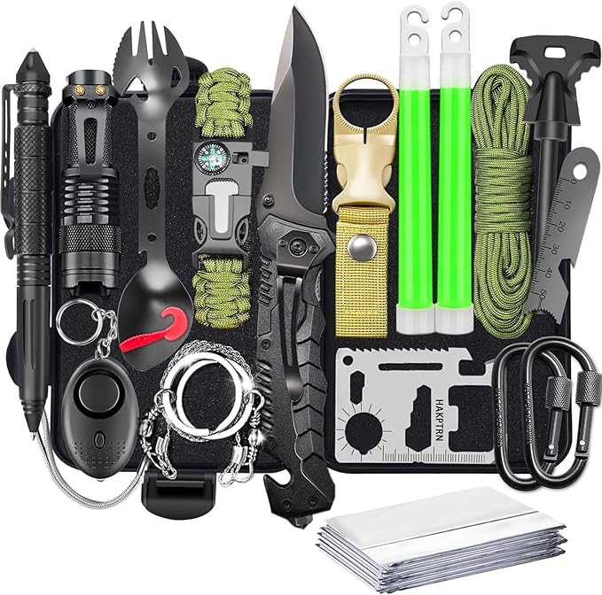 - This all-in-one survival kit has everything a survivalist or outdoor enthusiast needs to quickly solve multiple scenarios. It's safe, practical, and helps you stay secure while hiking, camping, hunting, backpacking, or adventuring