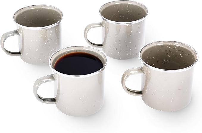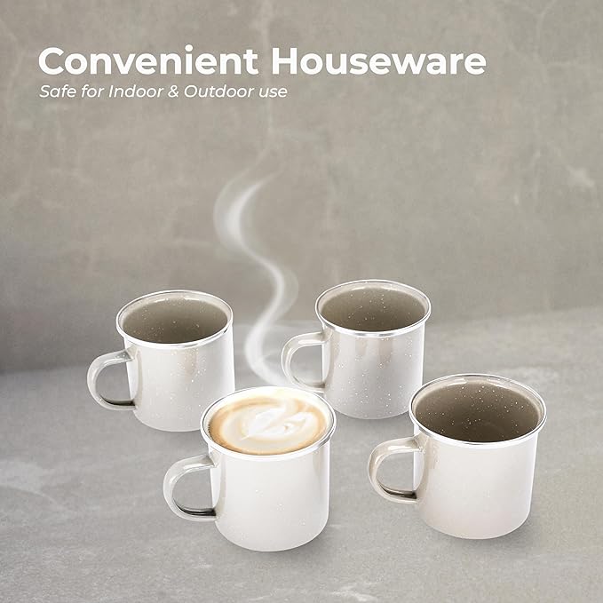 - COMFORTABLE GRIP AND TEMPERATURE RETENTION: Our enamel coffee mugs set features open handles for a comfortable grip. The superior insulation of the enameled carbon steel material keeps your drinks at the perfect temperature