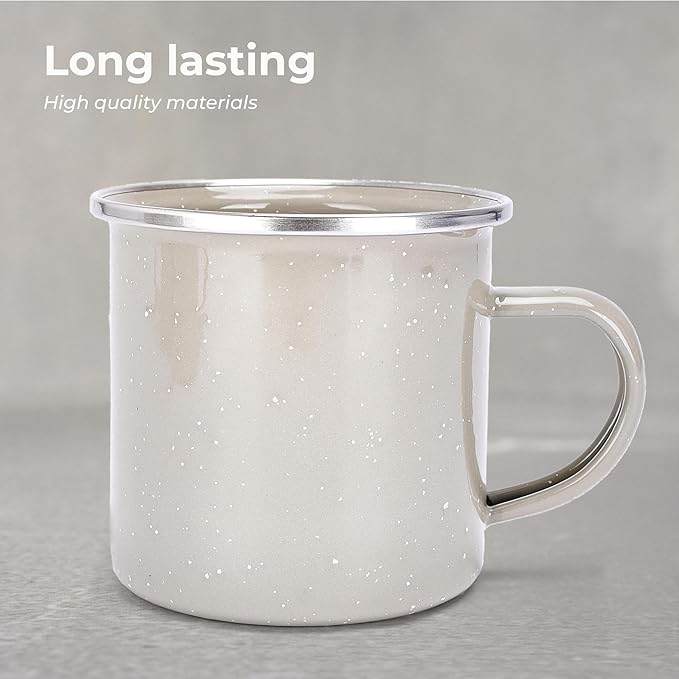 - DURABLE AND SCRATCH RESISTANT: Enjoy your favorite beverages with our enamel camping mug. Crafted with high-quality enamel steel, this campy mug offers durability and resistance to scratches