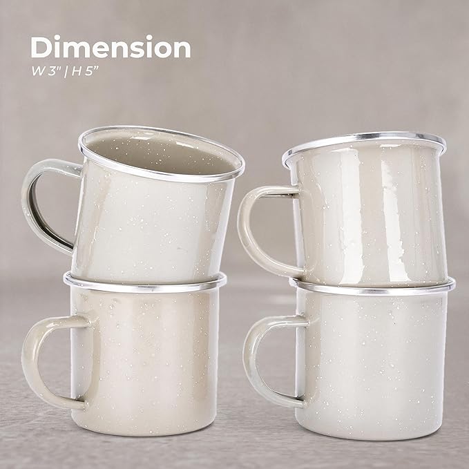 - VERSATILE FOR ANY SETTING: Whether you're camping or cozy at home, our enamel camp mug is perfect for any occasion. Its size of 3†Hx5†Lx3†W makes it a versatile choice for all your beverage needs