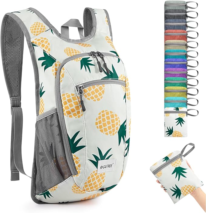 G4Free 10L/15L Hiking Backpack Lightweight Packable Hiking Daypack Small Travel Outdoor Foldable Shoulder Bag(Yellow Pineapple)