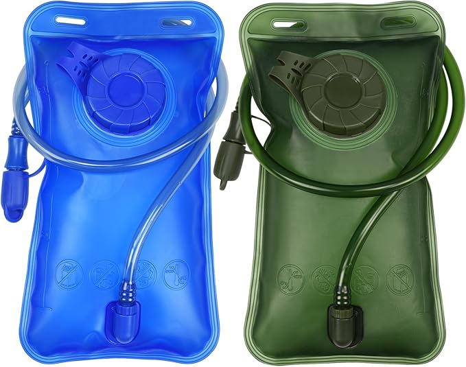 1.5/2/2.5/3L Hydration Bladder, 2pcs Water Bladder, Leakproof Water Reservoir for Hiking Biking Climbing Cycling Running Camping Backpack, Blue and Army Green