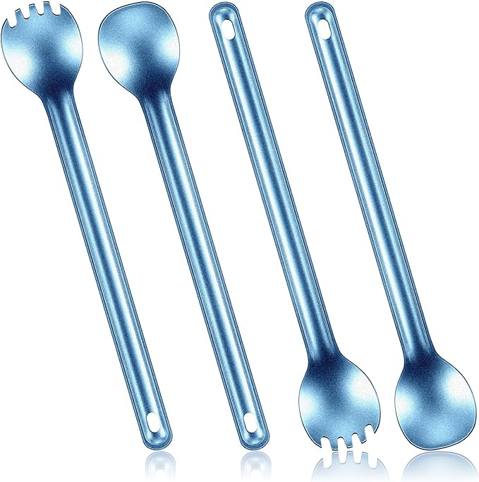 4 Pieces Titanium Long Handle Spork and Spoon 8.4 Inch Ultralight Portable Flatware Lightweight Soup Spoon Camping Spork Utensil for Outdoor Camping Backpacking Hiking Travel Picnic (Blue)