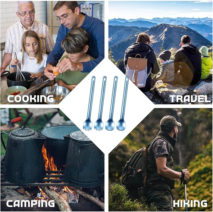 - Multiple Usages: the titanium spork can be widely adopted on different occasions, like camping, hiking, fishing, picnic, school lunch, eating in your car, and so on, practical and helpful for travelling