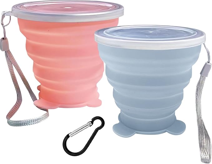 - Collapsible Cup, Silicone Collapsible Travel Cup, Expandable Folding Camping Drinking Cup with Lids Reusable Small Portable Mugs Cup for Travel, Camping, Hiking, Beach, Holiday Vacation, Outdoor Sports