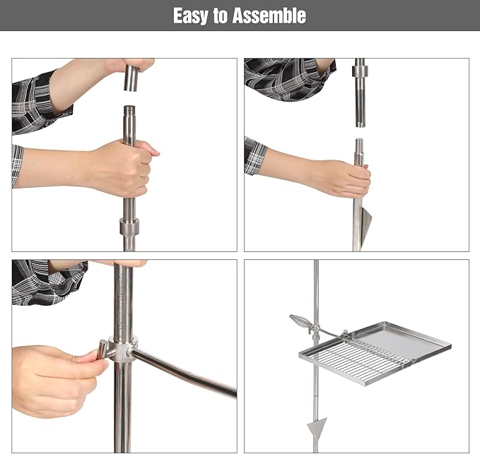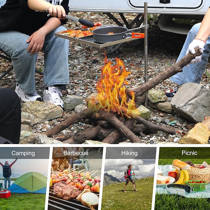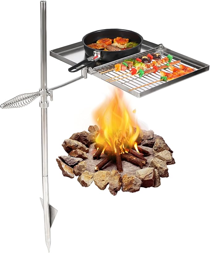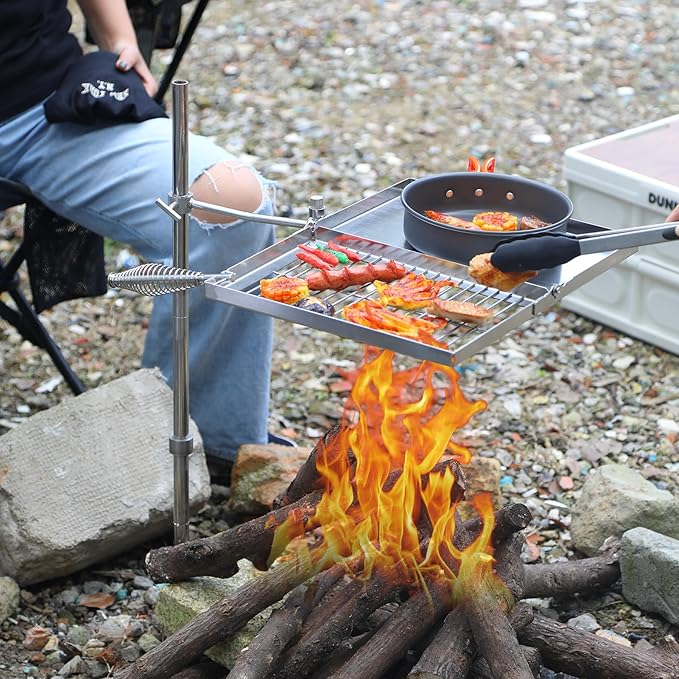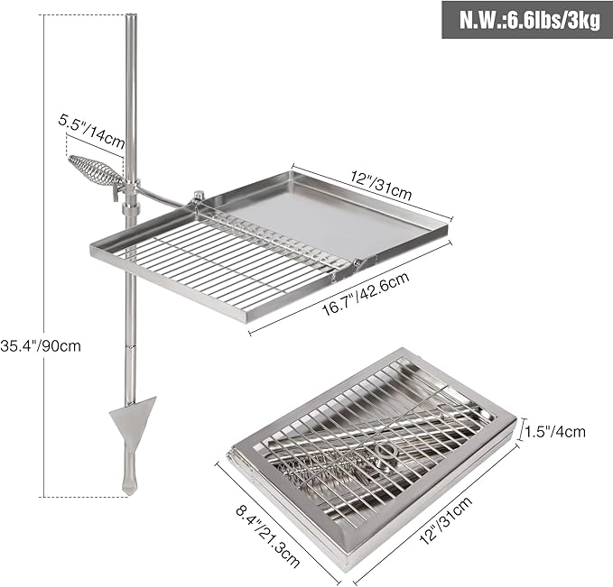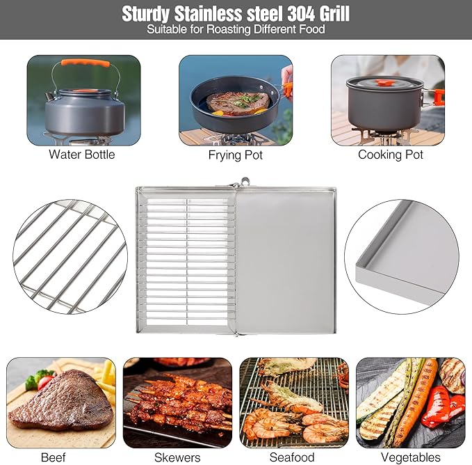 - Easy to Assemble: The over fire camp grill can be assembled easily in a few minutes. All the accessories are included. It’ s foldable and easy to carry, ideal for taking out to use.