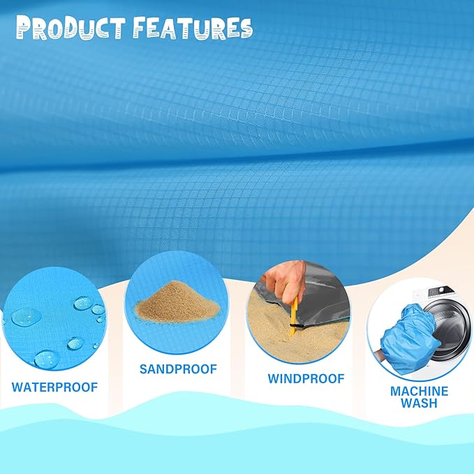 - 🌊BIG BEACH BLANKET:Durable and fast drying,can also be used as a canopy,sunshade,tent,toddler crawling mat,picnic mat,first aid mat,better professional fabric sewing without irritating the skin,providing you a good sense of use.