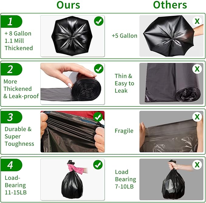 - Durable and Reusable: Thick bags hold waste and can be used multiple times