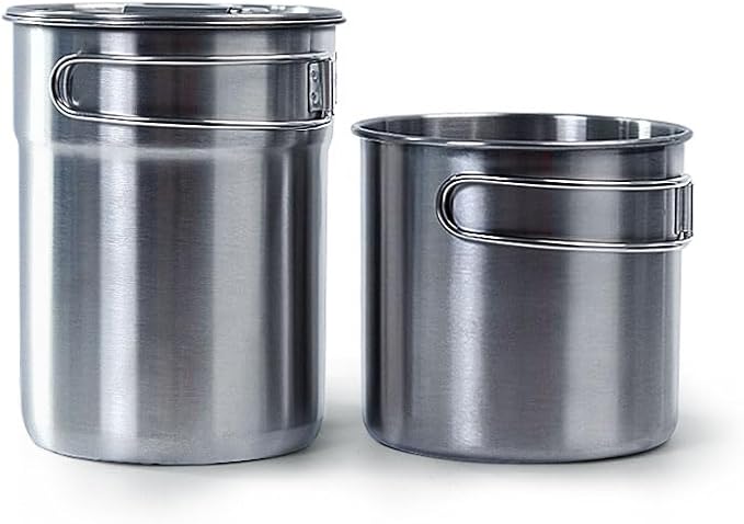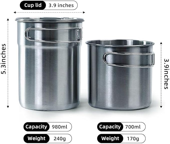 2Pcs Camping Cup Cups and Mugs Stainless Steel Camp Cup Mug Pot big cup 980 ml small cup 700 ml