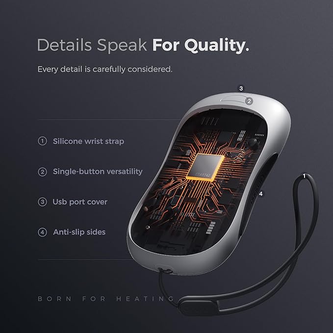 - Longer Lasting Warmth: With an enhanced 5000mAh x2 rechargeable battery capacity and performance, enjoy 6-15 hours of continuous heat, ideal for all-day outdoor activities. This handwarmer also functions as a power bank, capable of charging your phone over 3.5 times.
