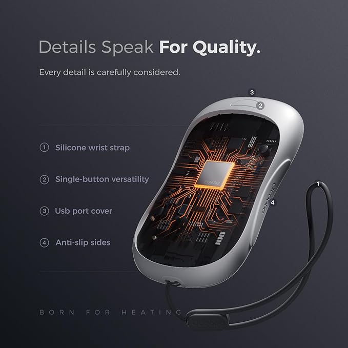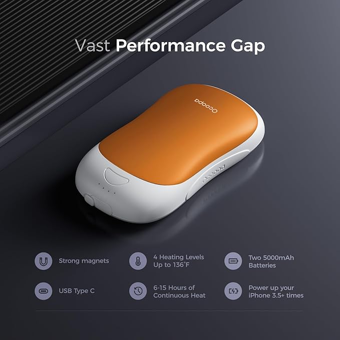 - Longer Lasting Warmth: With an enhanced 5000mAh x2 rechargeable battery capacity and performance, enjoy 6-15 hours of continuous heat, ideal for all-day outdoor activities. This handwarmer also functions as a power bank, capable of charging your phone over 3.5 times.