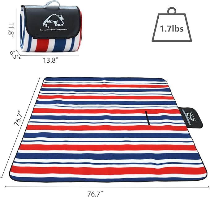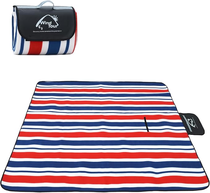 Wind Tour Family Outdoor Waterproof Durable Picnic Blankets with Carry Strap Foldable Sandproof Picnic Floor Mat for Kids Playground Camping Hiking Grass Travelling (1, Red & blue stripes-200*200cm)