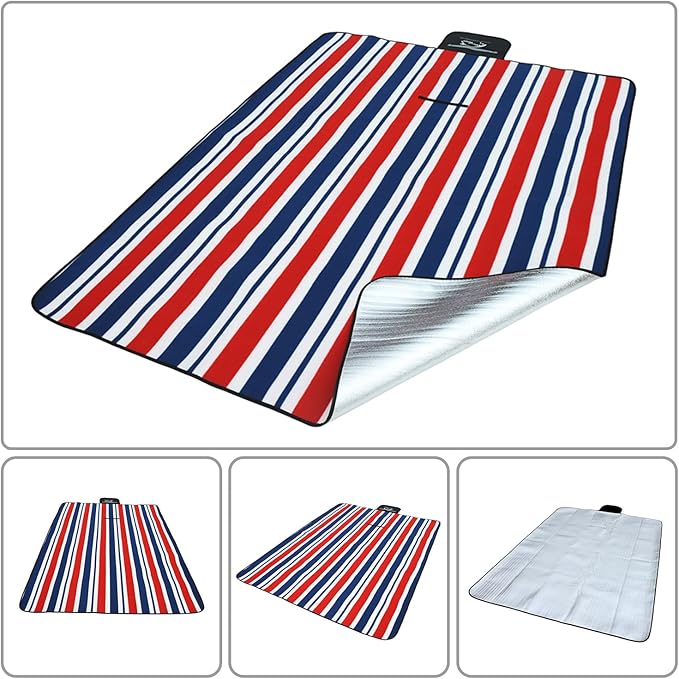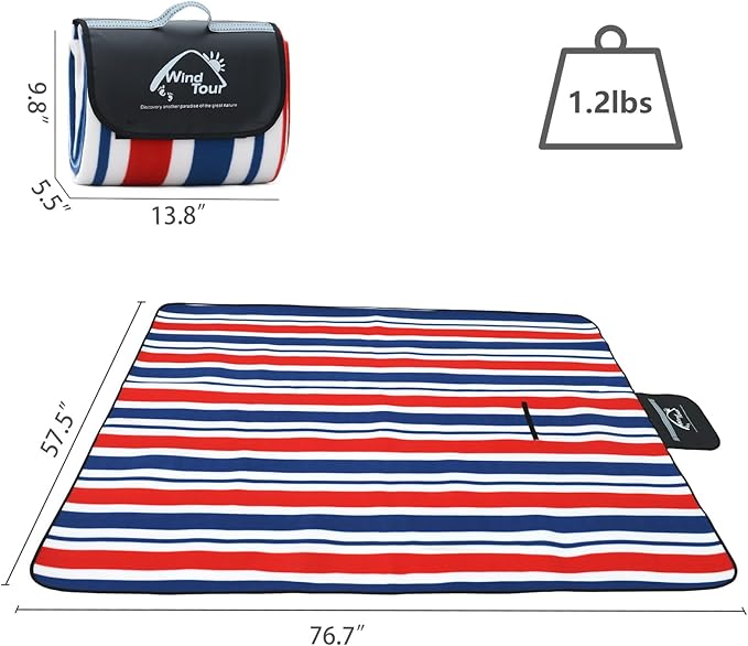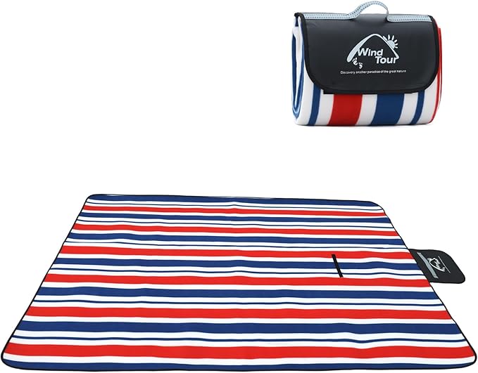 Wind Tour Family Outdoor Waterproof Durable Picnic Blankets with Carry Strap Foldable Sandproof Picnic Floor Mat for Kids Playground Camping Hiking Grass Travelling (1, Red & blue stripes-150*200cm)