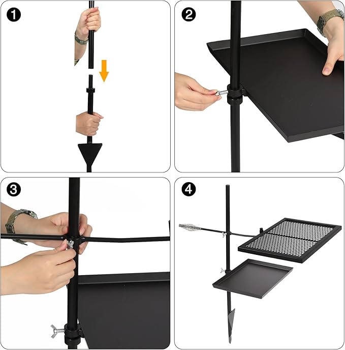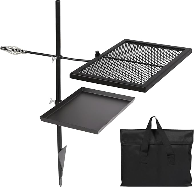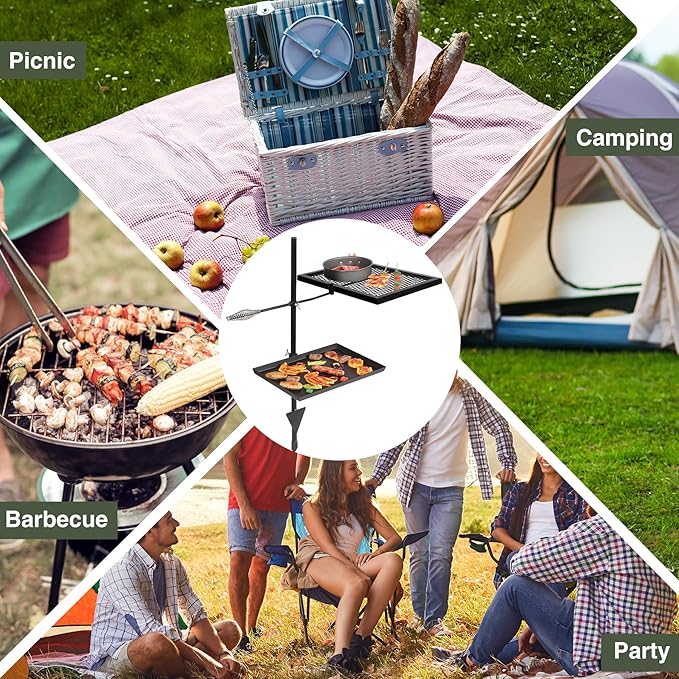 - Easy to Assemble: The adjustable swivel grill can be assembled easily in a few minutes. All the accessories are included. It’ s foldable and easy to carry, ideal for taking out to use. Perfect for camping and parties.