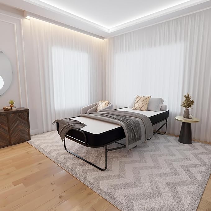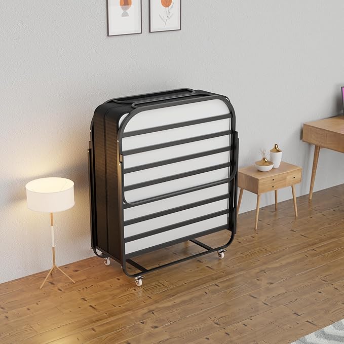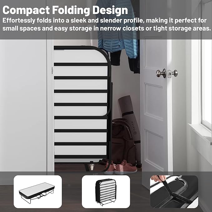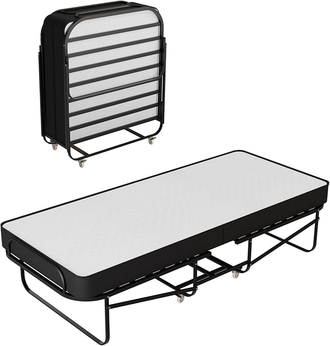 Greaton, 16-Inch Rollaway Folding Cot Bed with 5" Memory Foam Mattresses, Sturdy Metal Folding Frame, Fully Assembled, Great for Adults and Kids, Twin, White