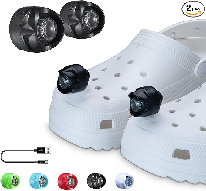RAHAN Rechargeable Headlights for Croc 2pcs,Flashlights Attachment for Crocs, LED Shoes Light with 3 Light Modes for Dog Walking, Camping, Running, Suitable for Adults, Black