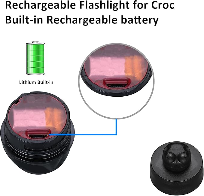 - 【Rechargeable Headlight for Croc Shoes】Upgraded rechargeable battery use environmentally friendly materials and are recyclable, capable of being recharged more than 1,500 times and providing over 13,000 hours of working time, can save you money on batteries.