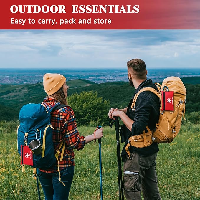 - PORTABLE DEDIGN: Measuring 7.9"x5.1"x2"(20x13x5cm) and weighing 0.5 lbs(224g). The compact size of our medical kit makes it easy to carry and store in your backpack, car, or any other location you may need it. Whether you're going on a hiking or camping trip, or heading out on a road trip, our first aid kit will be there to provide you with the essential medical supplies you need in case of emergencies. This small emergency kit can also be easily hung on your backpack.