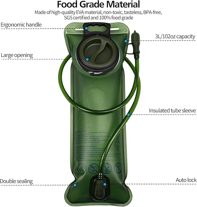- 【Package Include】- Package includes 1 pack 3L blue hydration bladder. It is suitable for long-time outdoor activities, hiking, climbing, camping, cycling (0- 60miles), etc.