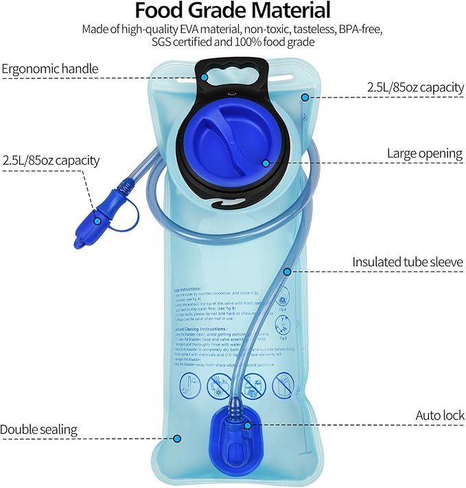 - 【Upgrade Leakproof】- Our water reservoir adopts military-grade double sealing technology, has self-locking joints, a large flow bite valve with switch and a dust cover. It has passed the air pressure test and is completely pressure-resistant and leak-proof.