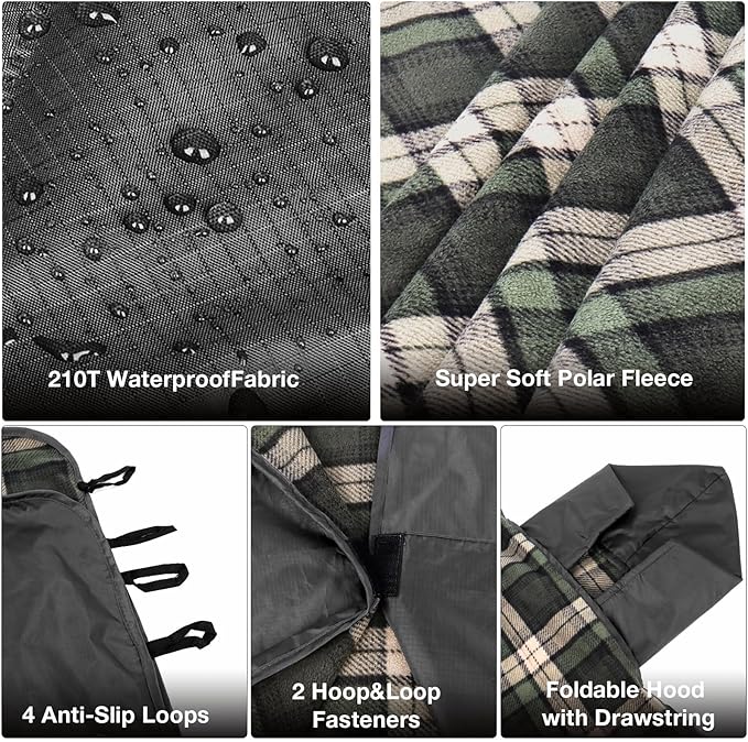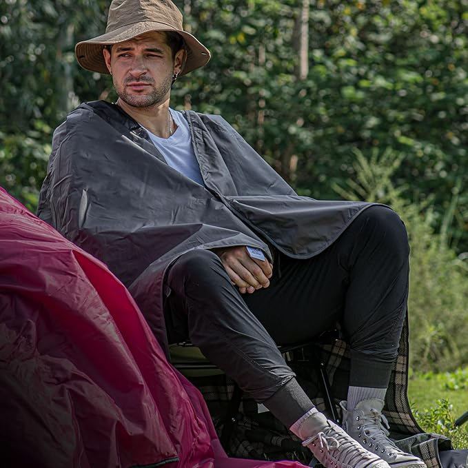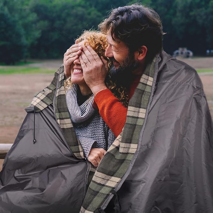- ✅ 𝗘𝗫𝗧𝗥𝗔 𝗟𝗔𝗥𝗚𝗘& 𝗨𝗟𝗧𝗥𝗔-𝗟𝗜𝗚𝗛𝗧:This large outdoor camping blanket measures 79 x 59 inches (equivalent to a Queen Size Mattress) is large enough to wrap up to 2 adult. The large waterproof outdoor blanket is specially designed with a hook&loop fastener, so that you can wear it on your body to free your hands.