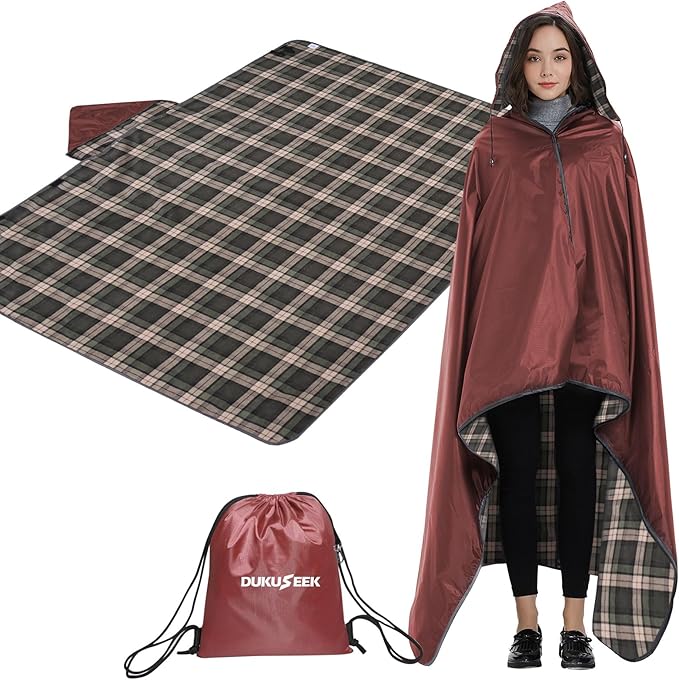 - ✅ 𝗦𝗧𝗔𝗗𝗜𝗨𝗠 𝗕𝗟𝗔𝗡𝗞𝗘𝗧 𝗪𝗜𝗧𝗛 𝗨𝗡𝗜𝗤𝗨𝗘 𝗛𝗢𝗢𝗗𝗘𝗗 𝗗𝗘𝗦𝗜𝗚𝗡:The DUKUSEEK outdoor waterproof stadium blanket for cold weather has an adjustable hood, which can be easily unfolded and converted into a poncho and cloak in rainy days. And it comes with a stuff sack for easy carrying and storage.