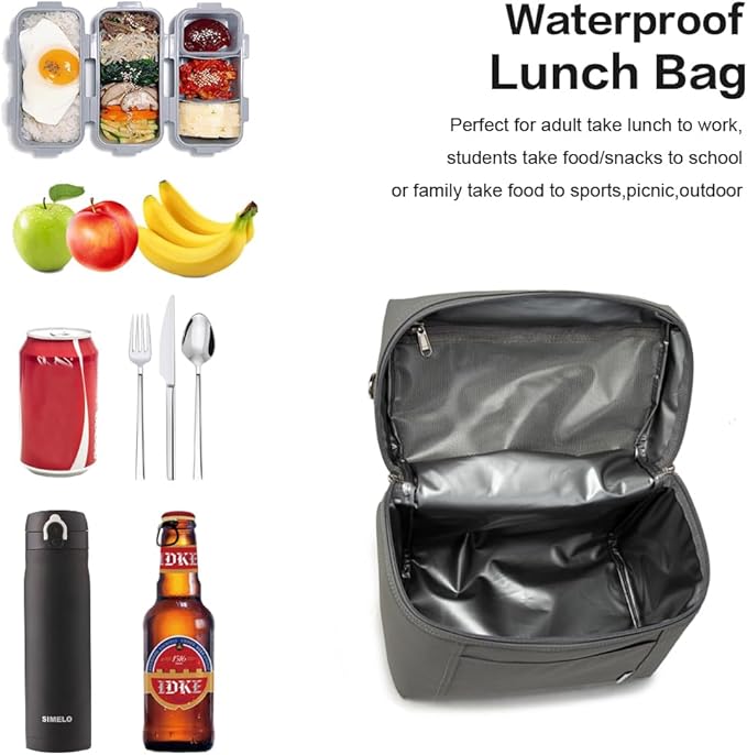 - Insulation & Freezing: the bag inside used the insulated 4mm thick PEVA lining,which provide great insulation to keep the food warm or fresh up to 5 hours. Very convenient to take food for work, office, picnic, camping and other activities.