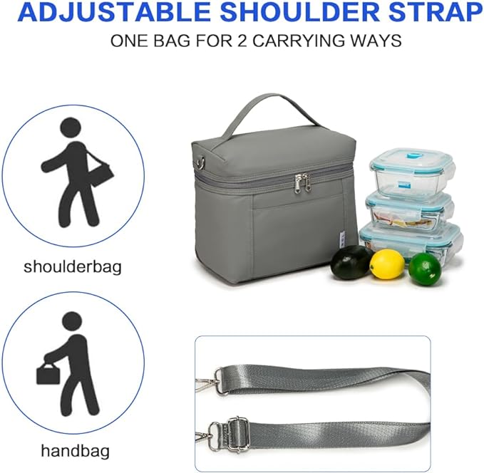 - Portable and cute design: this lunch bag is made of waterproof nylon outside, it’s lightweight and tear resistant; With two ways of carrying- top handle and cross-body by a detachable and adjustable long shoulder strap.