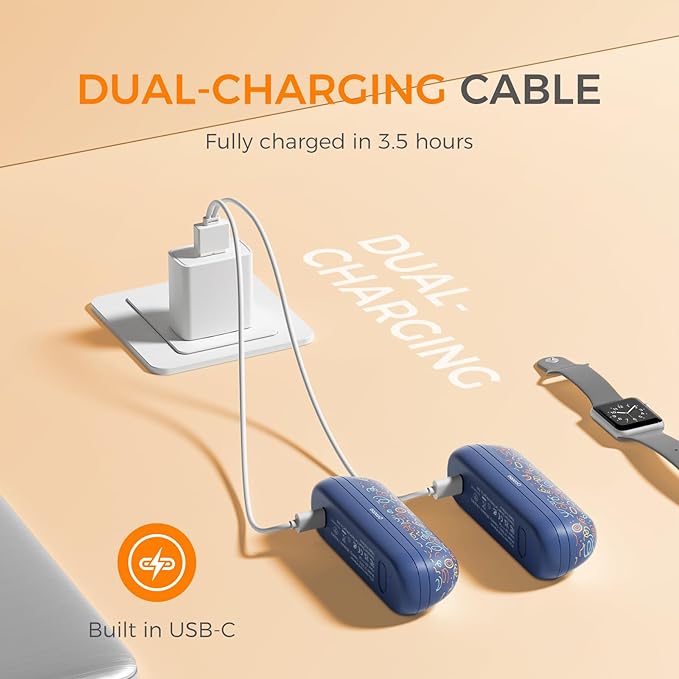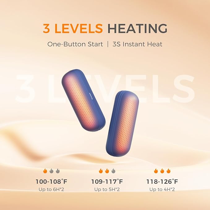 - Instant Heat, Lasting Warmth: Heat release in just 3 Seconds, 3 temperature settings up to 126 °F, Heat duration up to 4 to 6 hours; We offer a split USB-C charging cable, saving you charging time and allowing you to enjoy more warmth