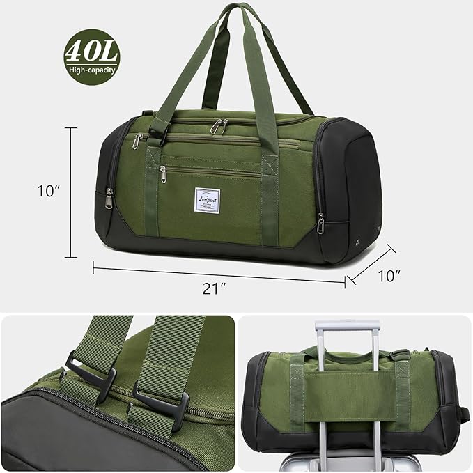 - 40L Medium Gym Bags for Men: Our gym duffle bags for men and women is designed to accommodate all your workout or travel essentials and more. This medium sports duffle bag can hold a capacity of 40L, it's the perfect travel duffel bag, weekender overnight bag, yoga bag, or sports gym bag for all your adventures. Size: 21 x 10 x 10 inches.
