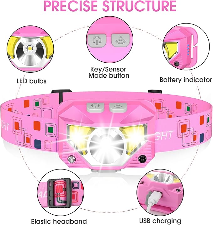 - Perfect Gift Choice: Are you still struggling with gift? LHKNL headlamp is your answer. Each package contains 2 headlamps. Beautiful unique pink headlamp designed for girls and women. It will be the perfect gift for your mother, wife, girlfriends, daughter on Christmas, Father's Day, Valentine's Day, Easter, Halloween, and Thanksgiving