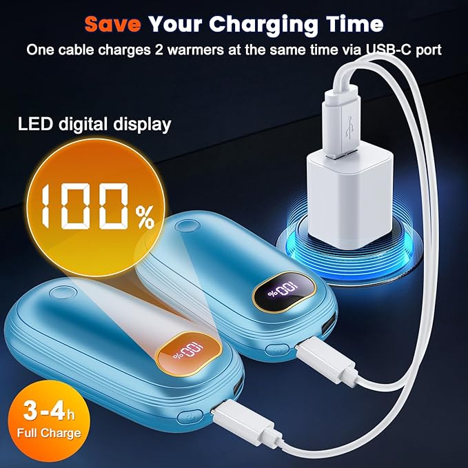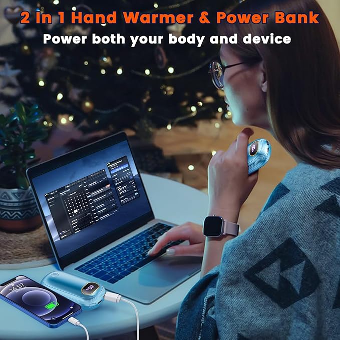 - 【Hand Warmers Rechargeable 2 Pack】Our hand warmers come with 2 units, a total of 14000mAh for lasting warmth and power. Our rechargeable hand warmer also serves as a power bank and offers real-time battery and heating status through the LED display, no more battery anxiety. A must-have for warmth and convenience!