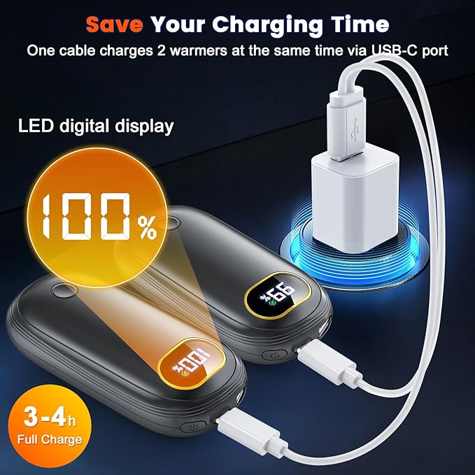 - 【Hand Warmers Rechargeable 2 Pack】Our hand warmers come with 2 units, a total of 14000mAh for lasting warmth and power. Our rechargeable hand warmer also serves as a power bank and offers real-time battery and heating status through the LED display, no more battery anxiety. A must-have for warmth and convenience!