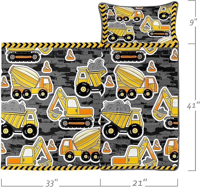 - Size - Nap mat measures 60“x21”x3“, comes with 21”x9" removable pillow. Attached blanket measures 51” x 33”. Suitable for children ages 3 to 7.