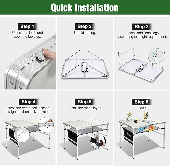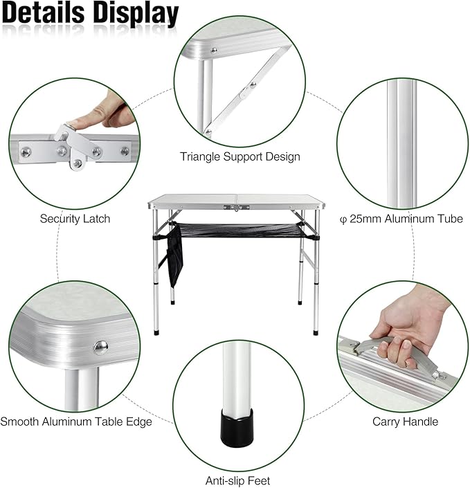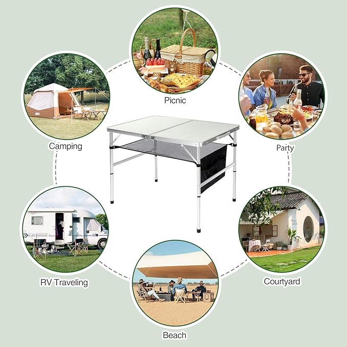 - Widely Used: This folding table can not only be used as a camping table, picnic table, and dining table. It can also be used in card games, puzzles, handicrafts, and more. Its versatility makes it a perfect complement to any home, office or entertainment space.