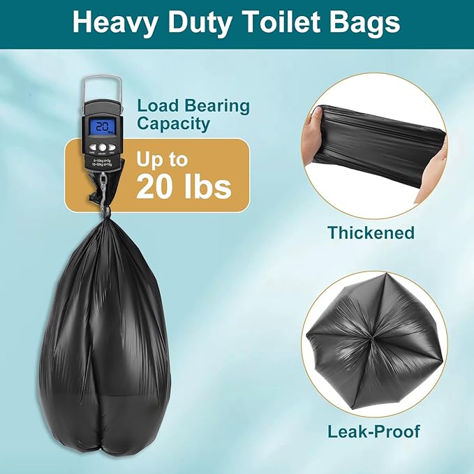 - 【Strong and Leak-Proof Toilet Liners】Crafted from High-Density Polyethylene (HDPE), our toilet liners are exceptionally strong, capable of supporting up to 20 pounds. Their 1.1-mil thickness ensures heavy-duty performance and guarantees leak-proof reliability, no worries about leakage.