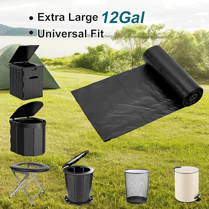 - 【12Gal Capacity- Best for Portable Toilets】Our toilet liners have an expansive size of 21.6 x 21.6 inches (65 x 65 cm) and a large 12-gallon capacity, making them compatible and the best choice for most common portable toilets, 5-gallon bucket toilets, and home trash cans.