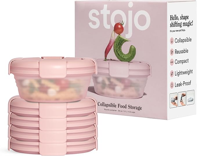 - Collapsible bowl: It’s literally never been easier (or more fun) to prep, store, and take food on the go! This compact bowl collapses down to just 1.3 inches. The 36 oz Stojo Bowl holds up to 4.5 cups of eats and is made for the kitchen as much as the commute. It stores nested and flat to save space, then pops open to upgrade your meal prep, leftovers, and work lunches. This Aquamarine Blue container is going to look right at home in your kitchen cabinet.